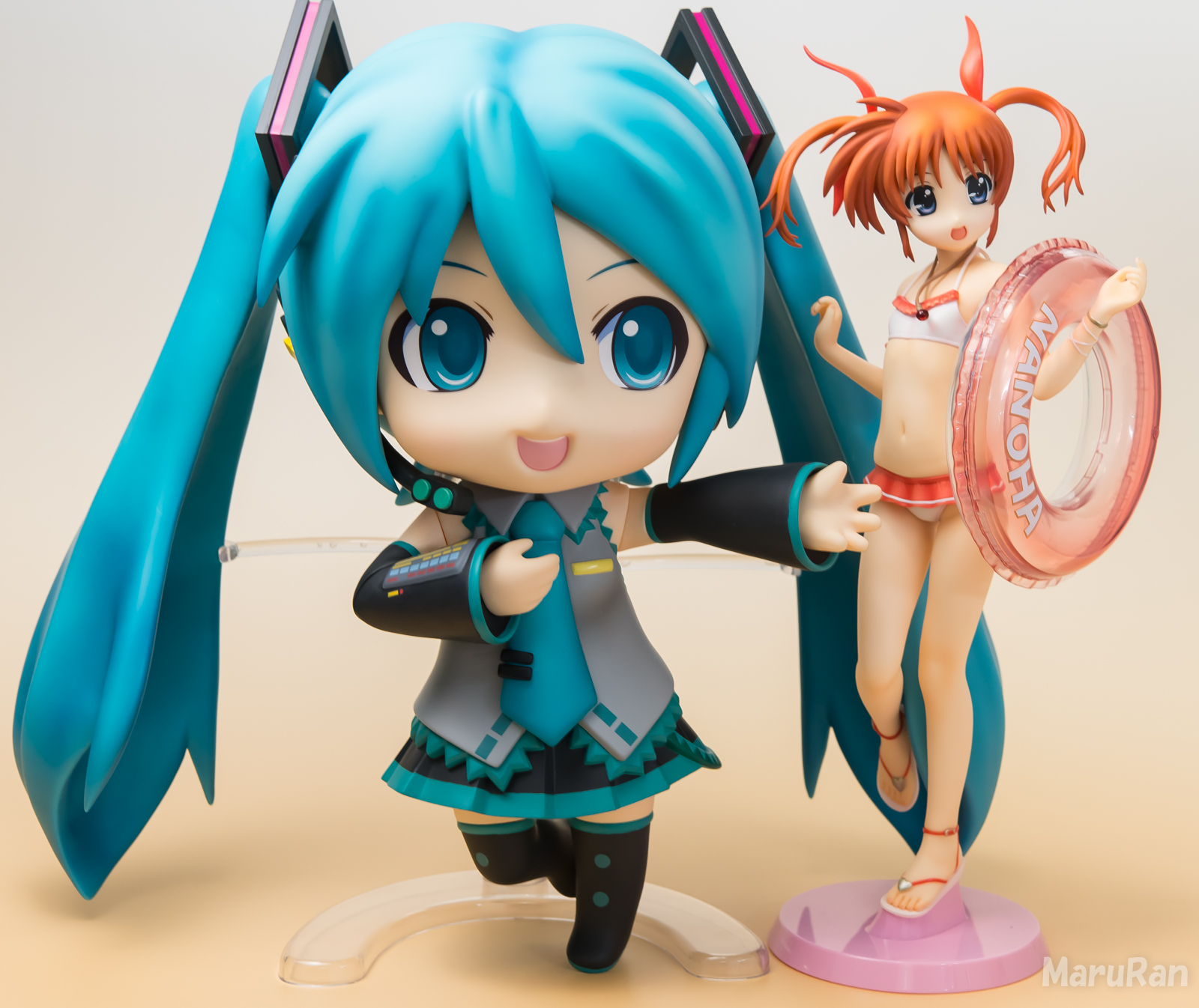 これだと、なのさちゃんが着ぐるみの初音ミクと遊んでいる感じもだせるし