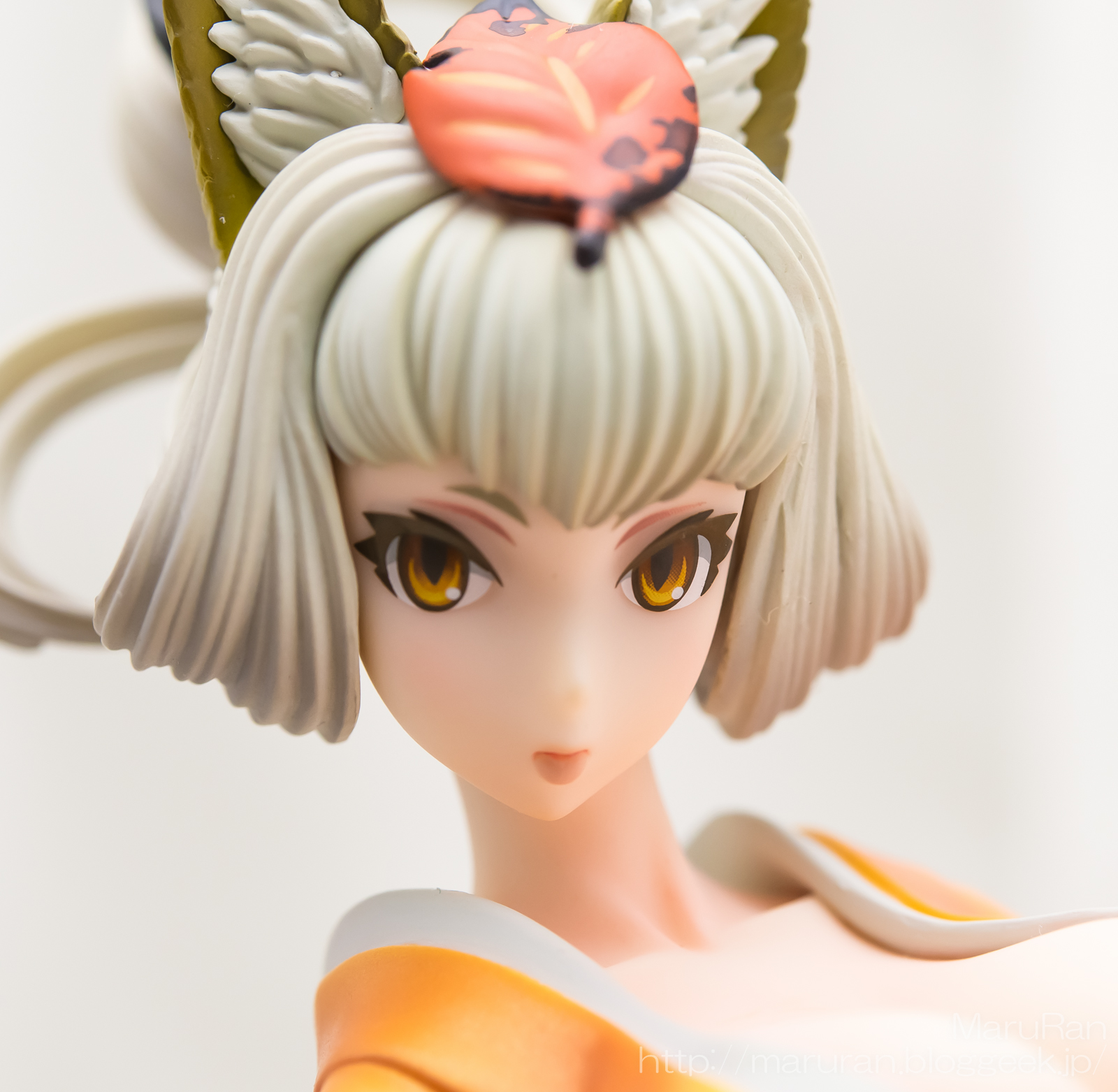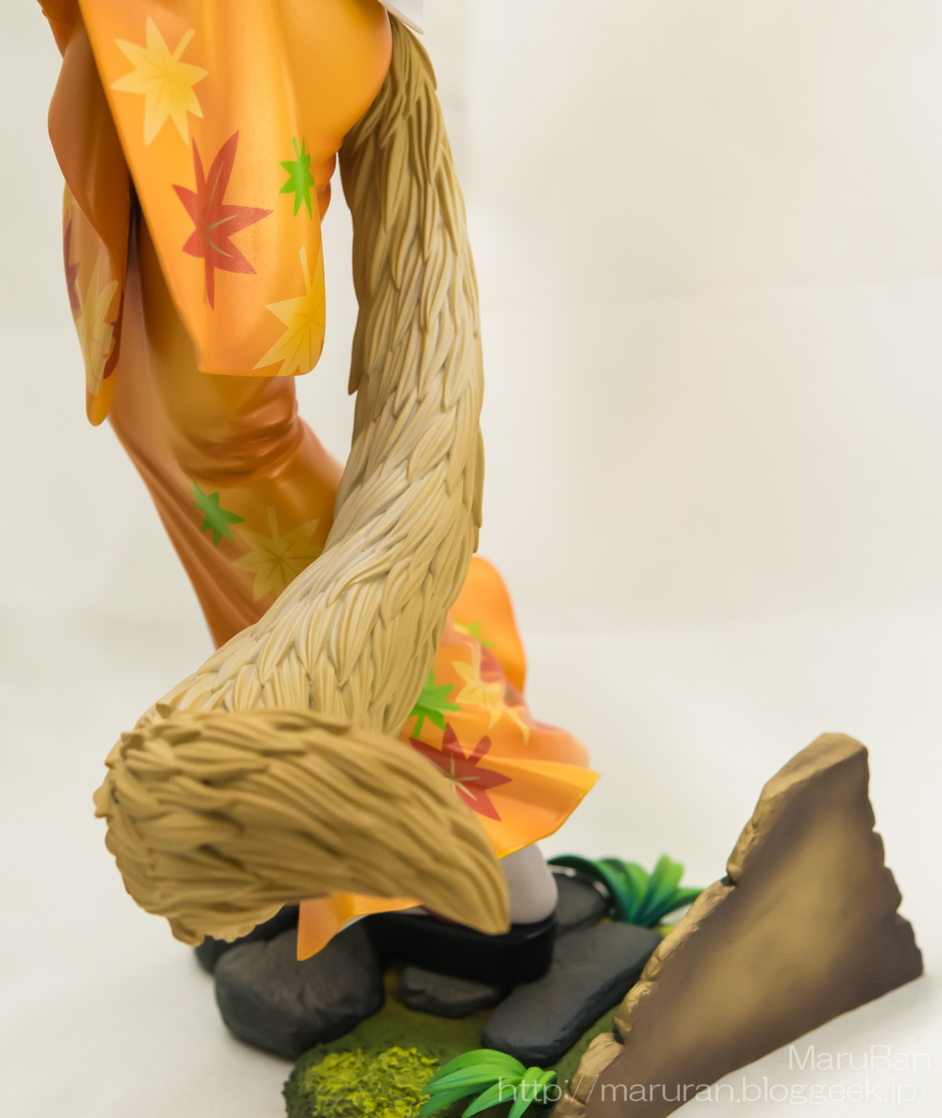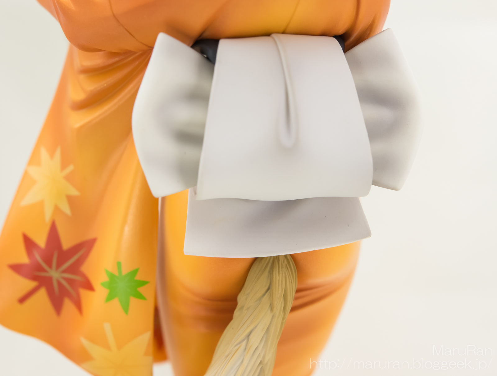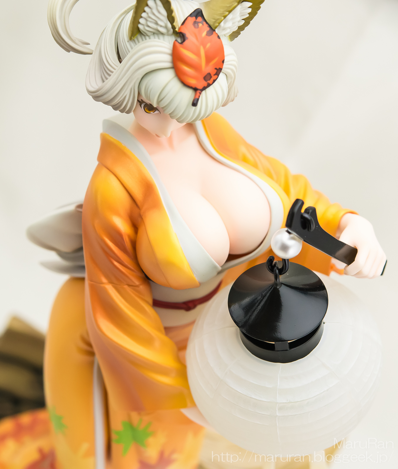 着崩している橙色の着物の造形がとても良い。落ち葉模様も