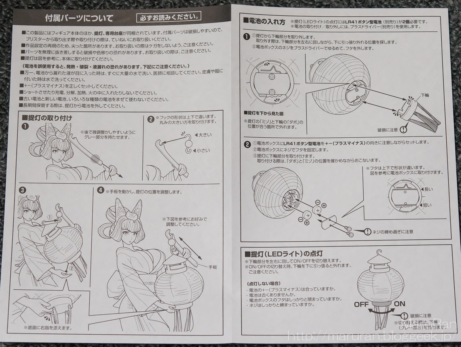 このフィギュアの特徴的な仕掛けとして、提灯が光るようになっている。