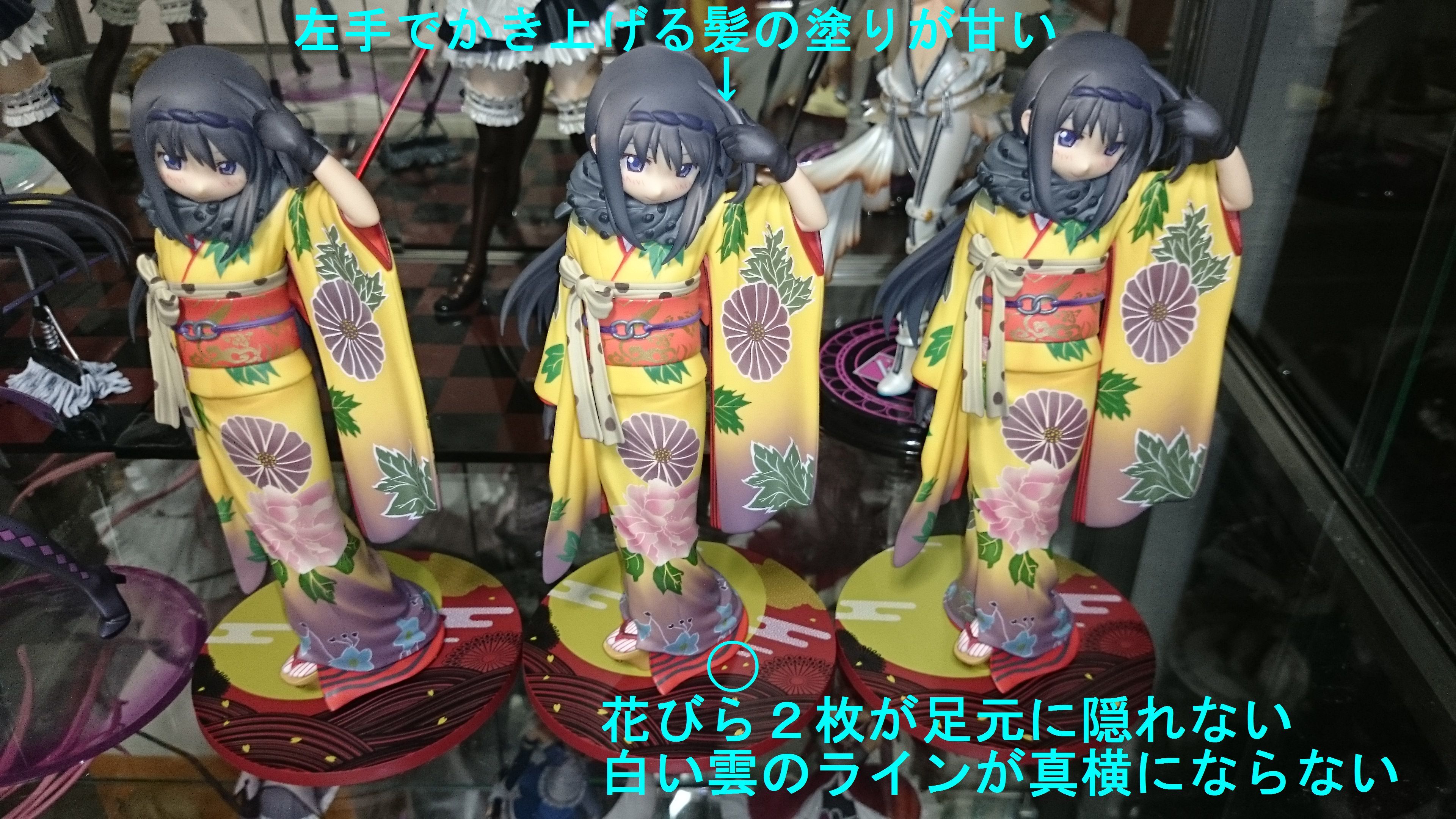 真ん中の1体は髪の毛の塗りが粗く、顔の角度が左向きだから相談を検討します