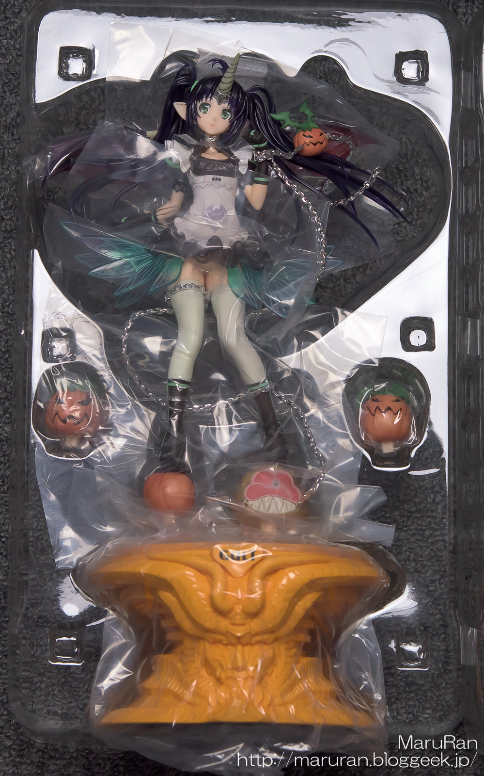 台座と組み合わせるパーツは2つ。パンプキンを付けたあと、フィギュア本体と