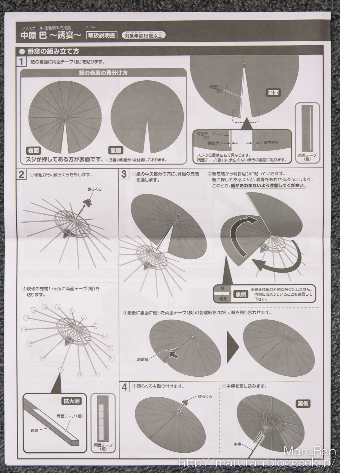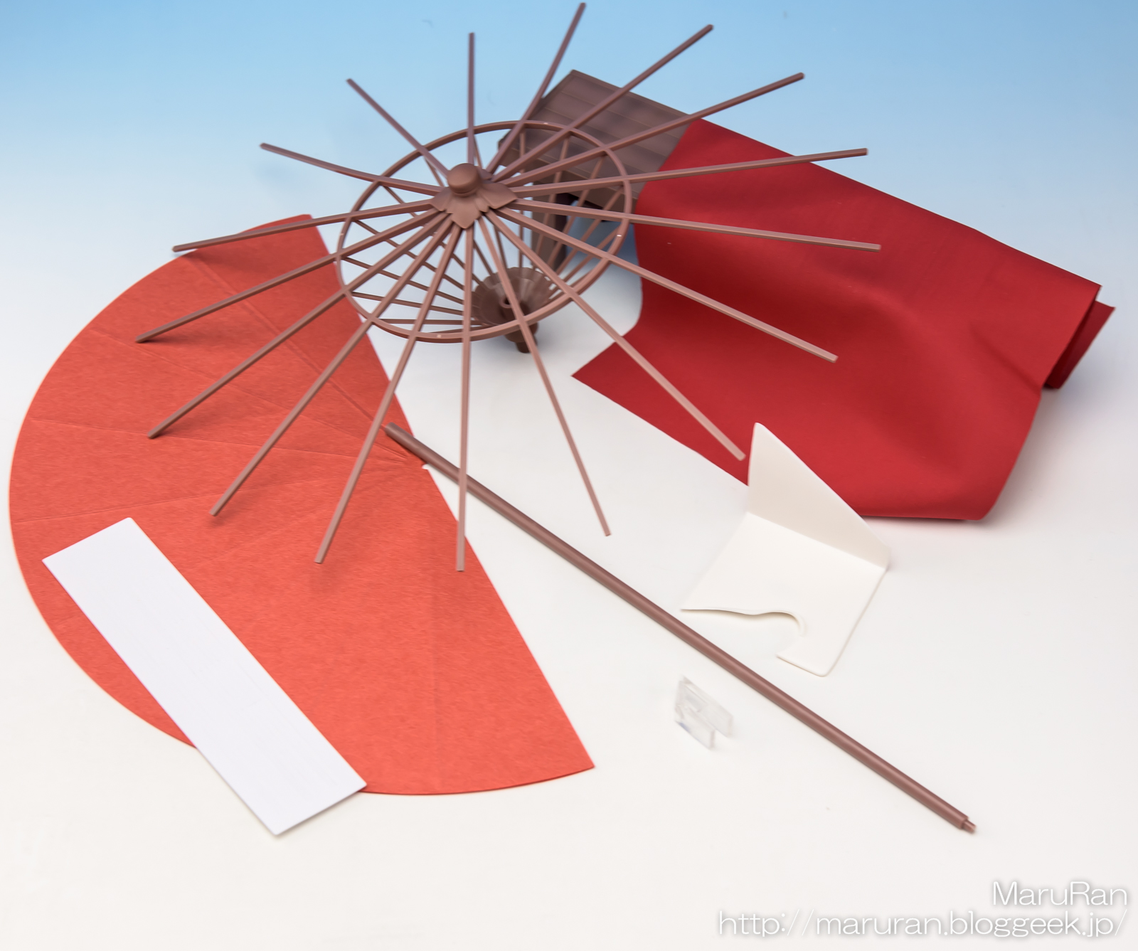 パーツとして入っている傘は骨組みのみで、和紙を自分で貼らないといけない。