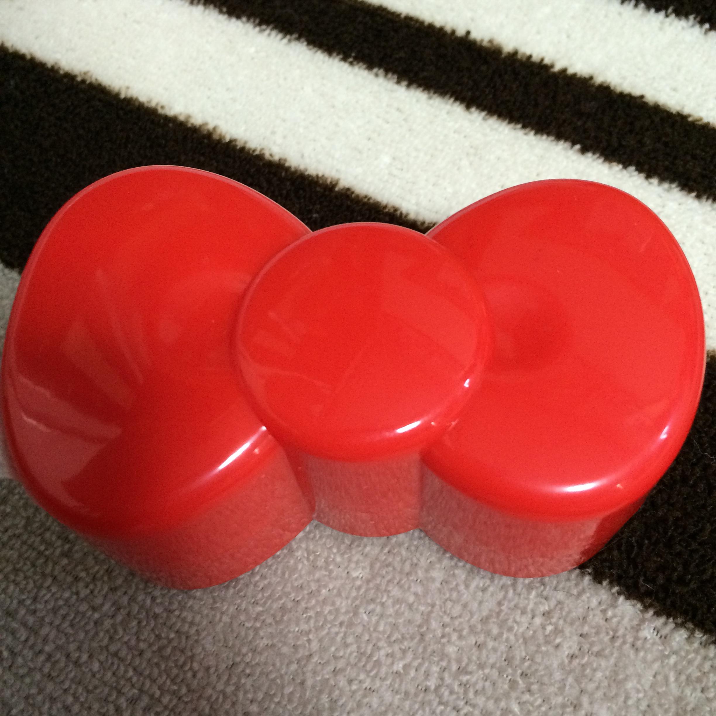 全長約10cm。タケコプター付けたキティとキティのリボンを蝶ネクタイにした